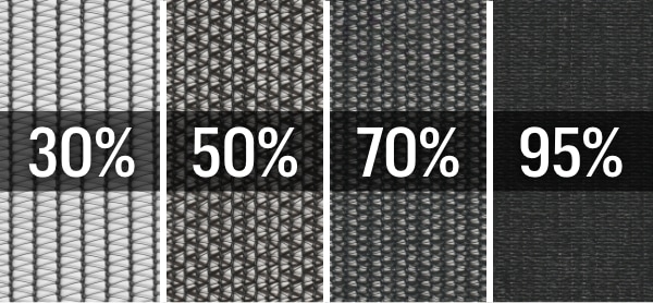 Coolaroo fabrics are available in a range of UV block levels, from 30% to 95%. The higher the percentage, the greater the UV protection and shade coverage.