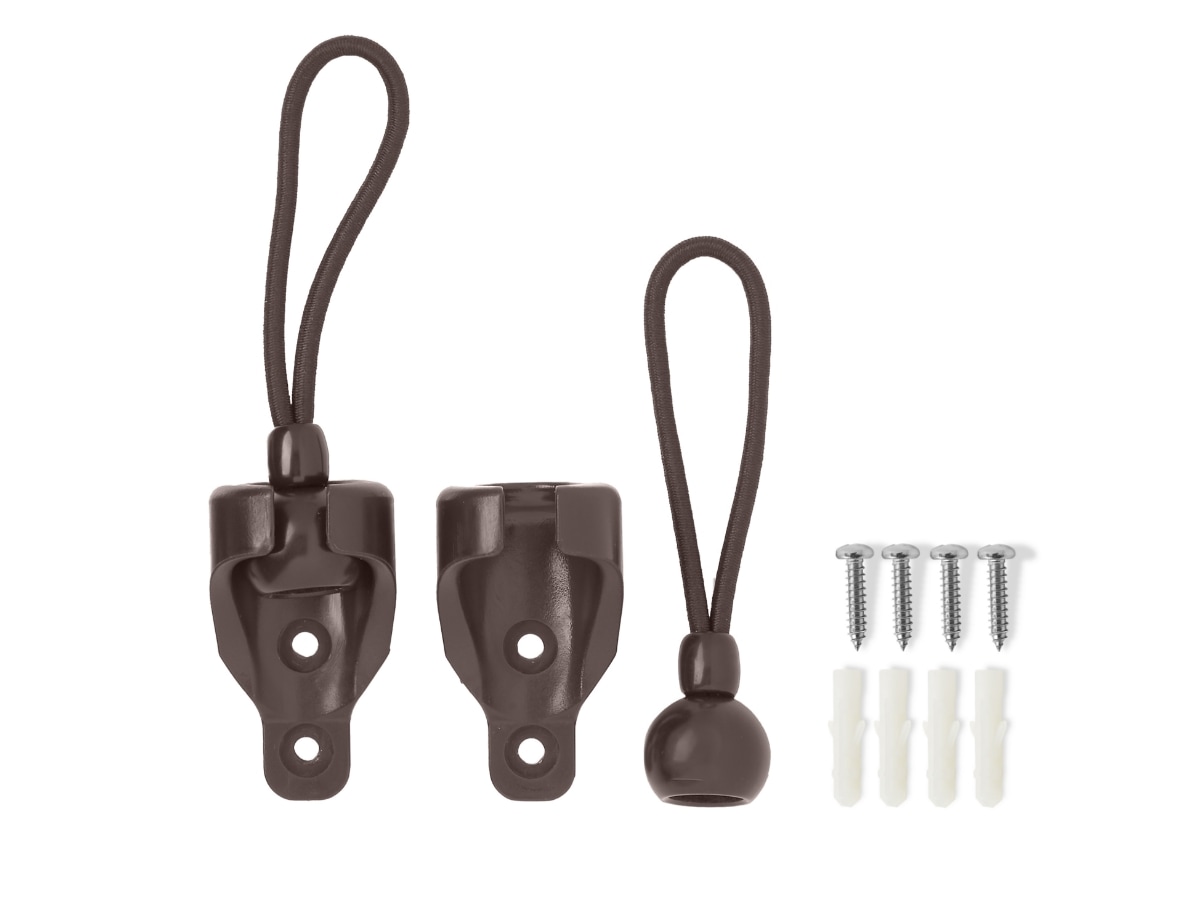Set of (2) replacement bottom rail plugs with bungee holes (25 mm × 30 mm) in brown for Coolaroo Outdoor Roller Shades without valances, compatible with shades produced after February 2025.
