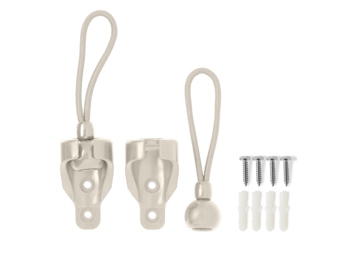 Set of (2) replacement bottom rail plugs with bungee holes (25 mm × 30 mm) in Sand for Coolaroo Outdoor Roller Shades without valances, compatible with shades produced after February 2025.