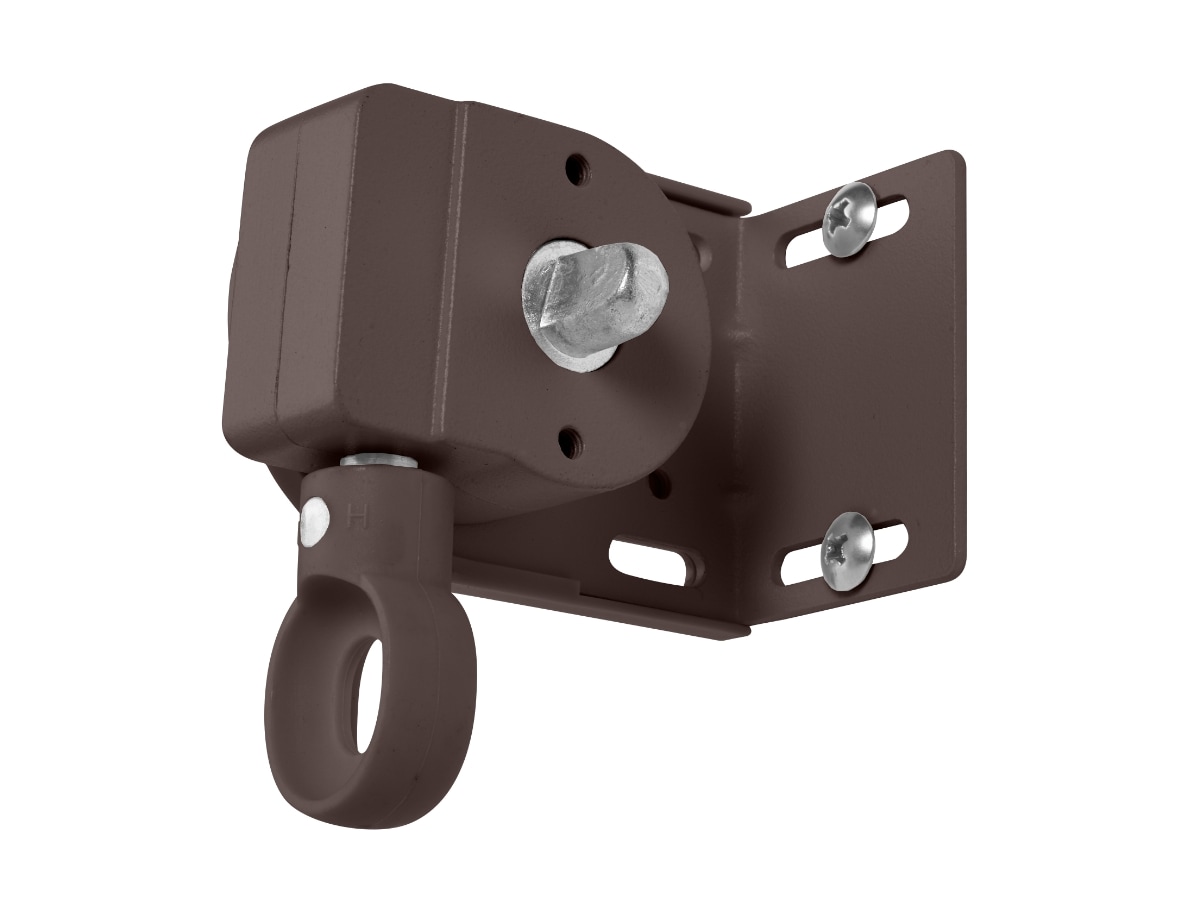 The Idle Bracket Assembly, Left Top Mount in Brown, is an idle end unit pre-configured for top-mount installation, suitable for both corded and cordless Coolaroo Outdoor Roller Shades, and can be adjusted for right- or left-side use as needed. NOTE: The idle end will always be on the opposite side of the control unit.