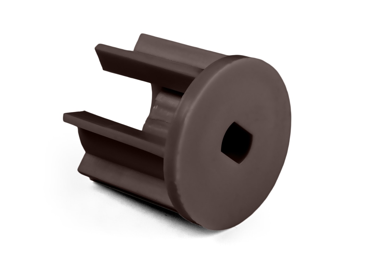 The Wand Bracket Assembly, Right Wall in Brown, is a cordless crank unit pre-configured for right-side installation of Coolaroo Outdoor Roller Shades and requires a wand, sold separately, for operation.