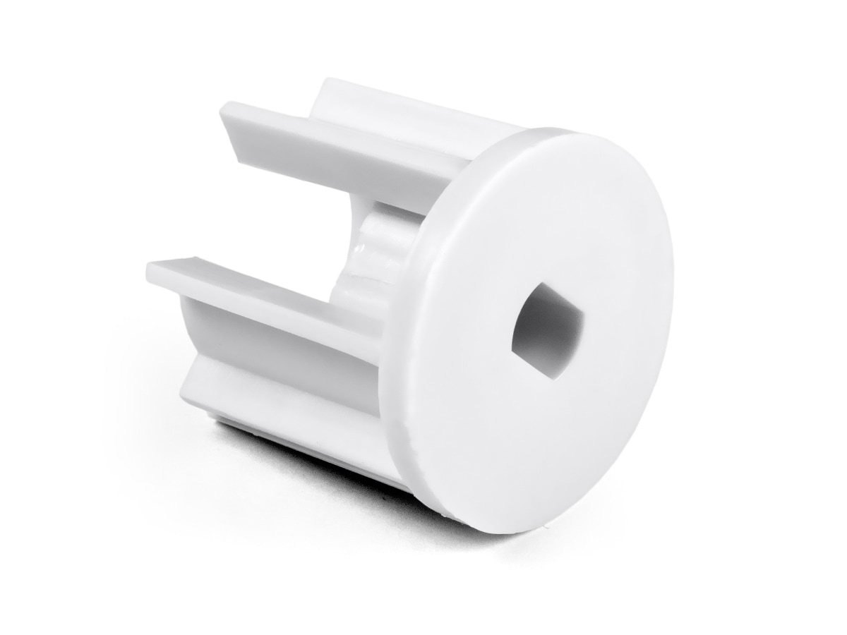 The Wand Bracket Assembly, Top Mount in White, is a cordless crank unit pre-configured for ceiling-mount installation of Coolaroo Outdoor Roller Shades and requires a wand, sold separately, for operation.