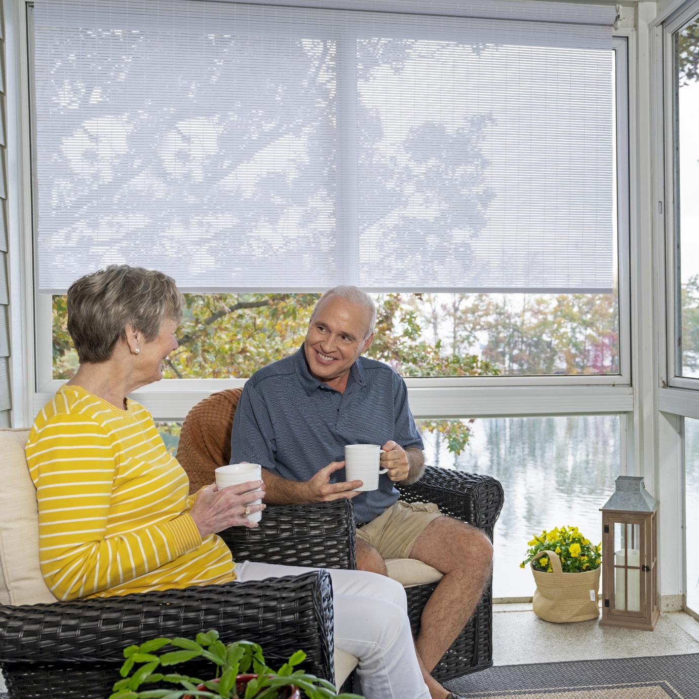 The minimalist design and light-filtering effect of our wheel operated roller shade brings a modern style to your porch or patio while also providing the sun protection you need. A simple turn of a wheel gives you control over how much sun or privacy you enjoy throughout the day.