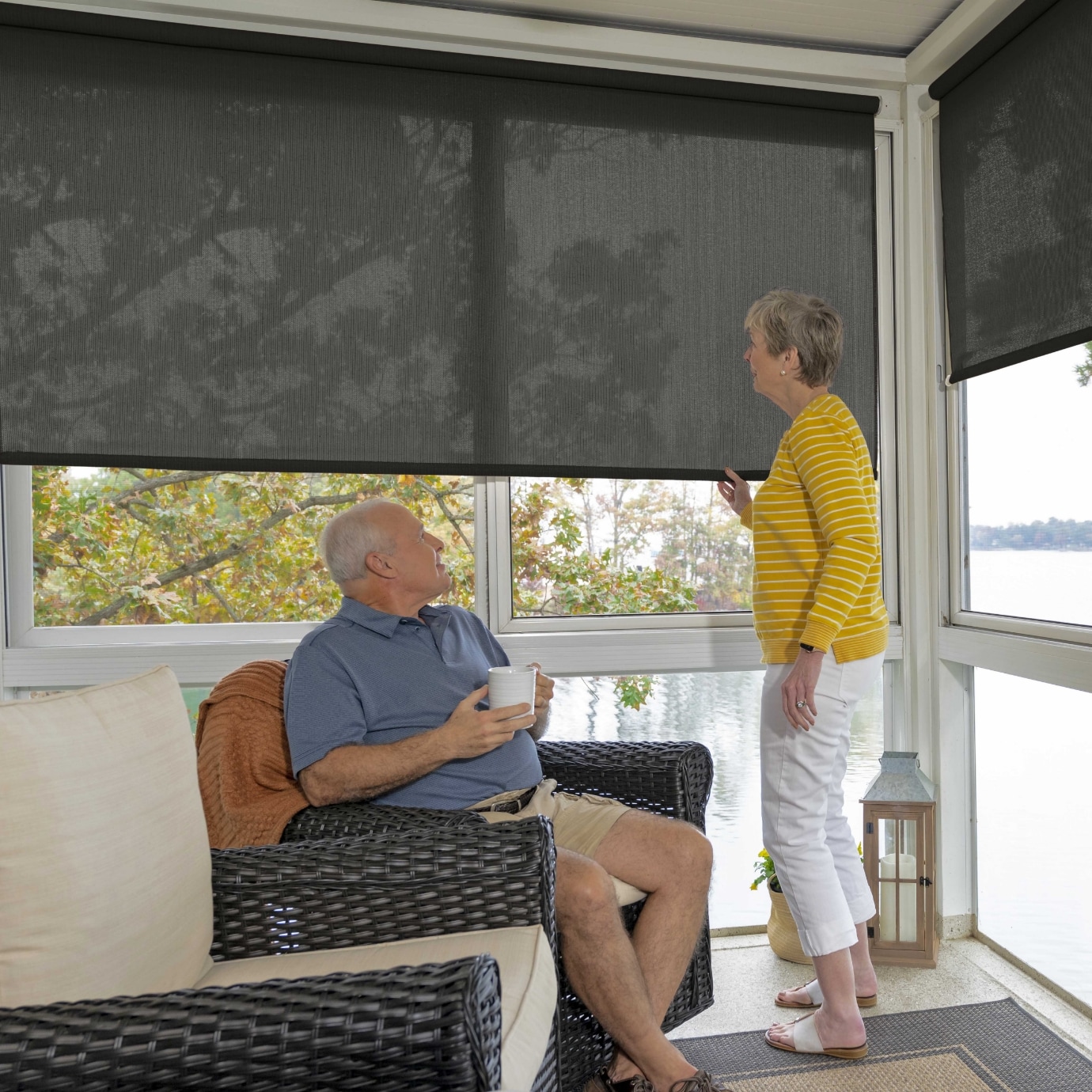 One gentle pull on this fabric roller shade positions the shade exactly where you want it, turning outdoor hot spots into cooler environments with little fuss.