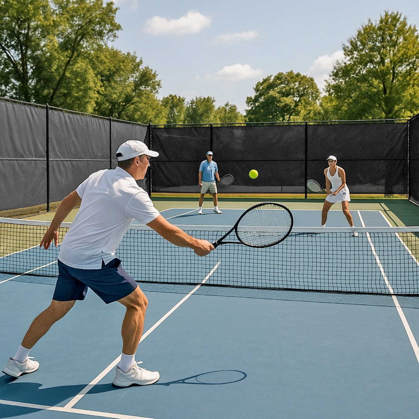 Create focused play zones around tennis and pickleball courts to reduce distractions from neighboring activities and provide wind reduction for more consistent gameplay.
