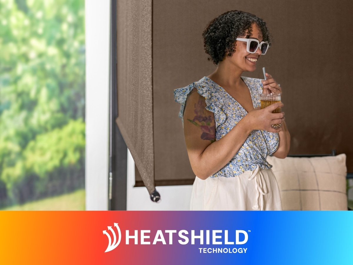 Standard shade blocks light but doesn't address heat. Our HeatShield® cover technology actively reflects infrared rays (the ones that feel hot) to create a naturally cooler environment. The difference is measurable.