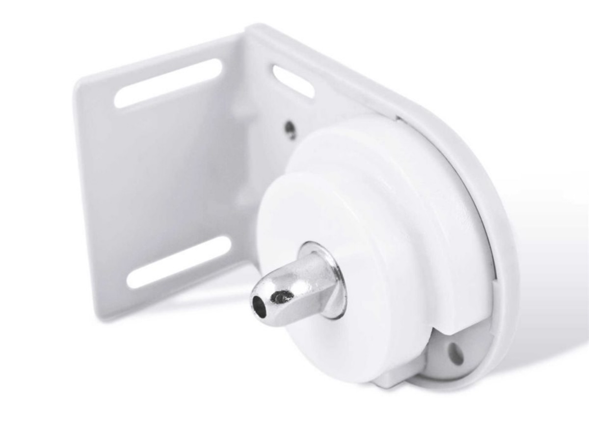 The Idle Bracket Assembly, Left/Right Wall Mount in White, is an idle end unit pre-configured for wall-mount installation and is suitable for both corded and cordless Coolaroo Outdoor Roller Shades.