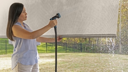 Made from fade-resistant, mold- and mildew-resistant fabrics that withstand sun, wind, rain, and even hail.