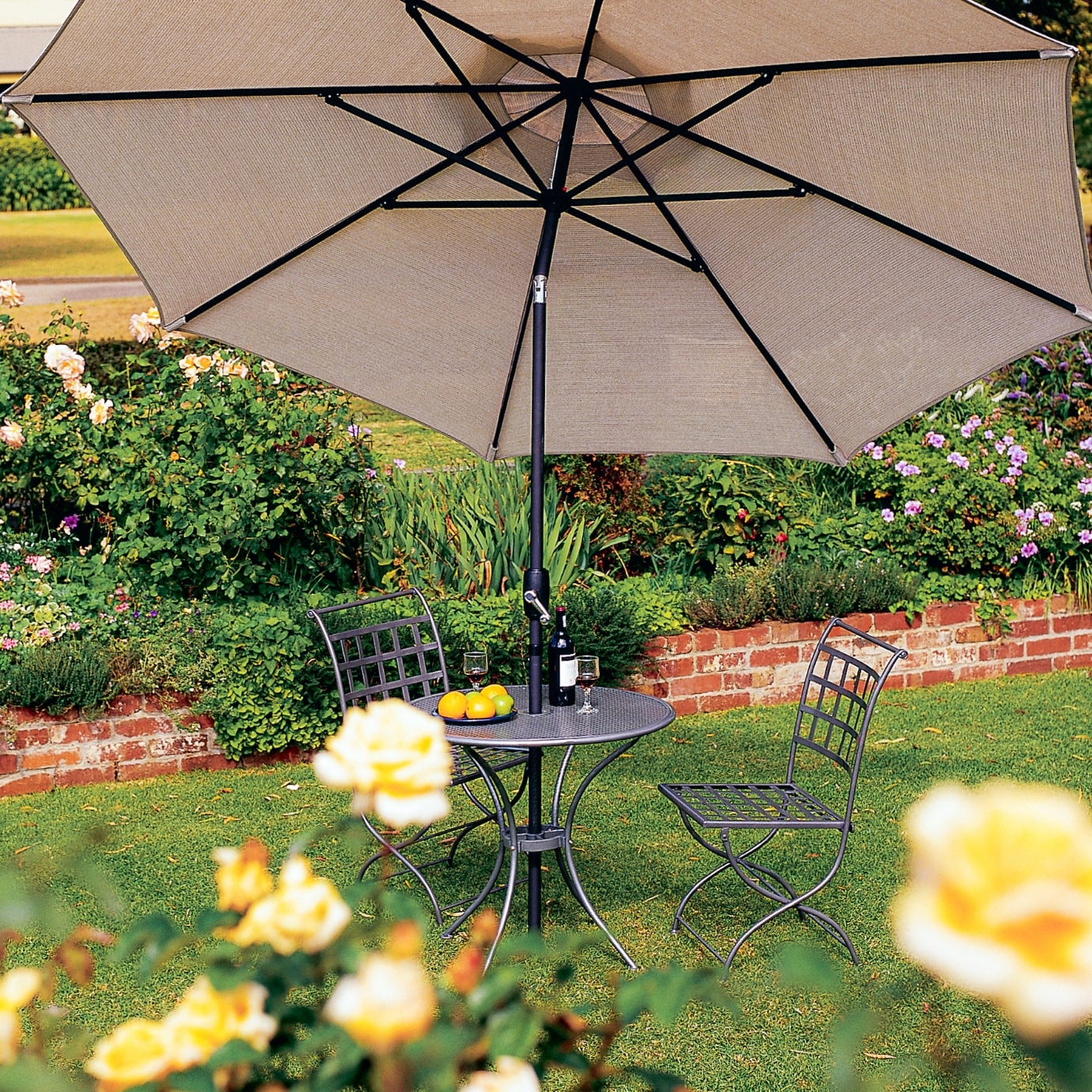 Designed to slip seamlessly through standard patio table openings, this umbrella pairs perfectly with your existing furniture. For standalone use, simply add your choice of compatible market umbrella base (sold separately) for versatile shade placement anywhere in your outdoor space.